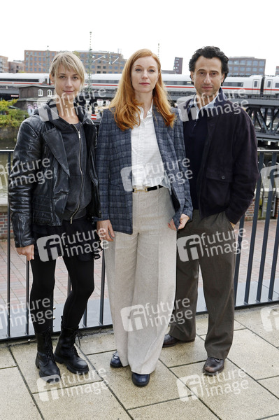 Sara Hjort Ditlevsen, Marleen Lohse und Serkan Kaya beim Fototermin am Set des NDR Thrillers 'Frau ohne Namen' in der Banksstraße. Hamburg, 23.10.2025