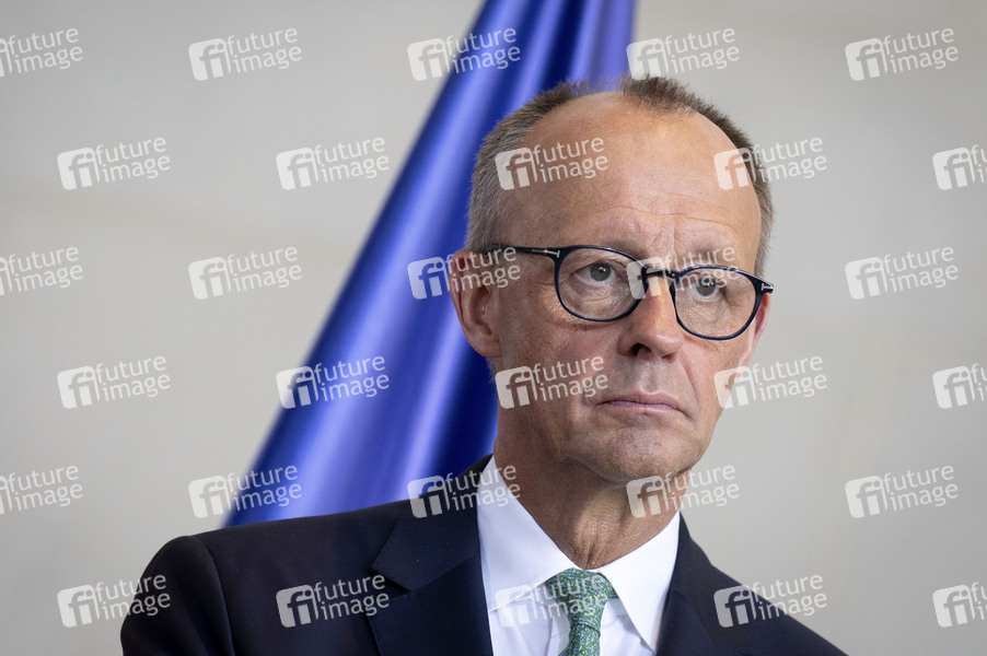 Friedrich Merz beim Empfang der Bundespräsidentin der Schweiz mit militärischen Ehren zu einem gemeinsamen Gespräch mit anschließendem Pressestatement im Bundeskanzleramt. Berlin, 02.09.2025