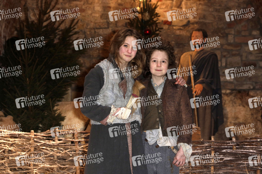 Lea Mueller und Joerg Hartmann beim Fototermin am Set des Fernsehfilms 'Das Mädchen mit den Schwefelhölzern' aus der ARD-Märchenreihe 'Sechs auf einen Streich' in der Zitadelle Spandau. Berlin, 18.03.2013