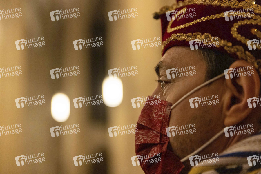Der karnevalistische Gottesdienst fand unter 3G-Bestimmungen in der Severikirche auf dem Erfurter Domberg statt. Pfarrer Michael Neudert, gab den Karnevalisten, einschließlich den Prinzenpaaren Christian II. und Verena II. und den Kindern Luca I. und Noelanie I. den Segen für die anstehende Kampagne. (Person im Bild: Prinz Christian II.). Erfurt, 16.01.2022