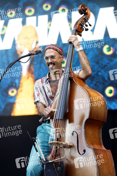 Ahmed Eid von der Band Bukahara live im Kulturgarten in der Bonner Rheinaue. Das Bonn Live Kulturgarten Open Air Festival 2020 ist Europas erstes Open Air Musik Festival unter Corona-Auflagen wegen der Covid-19 Pandemie. Bonn, 21.07.2020
