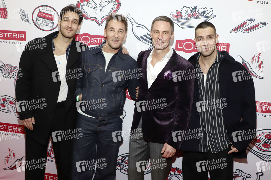 Joshua Keller, Mark Keller, John Schlüter und Aaron Keller bei der Eröffnung der 200. Filiale von L'Osteria in Othmarschens Marzipanfabrik. Hamburg, 20.02.2025
