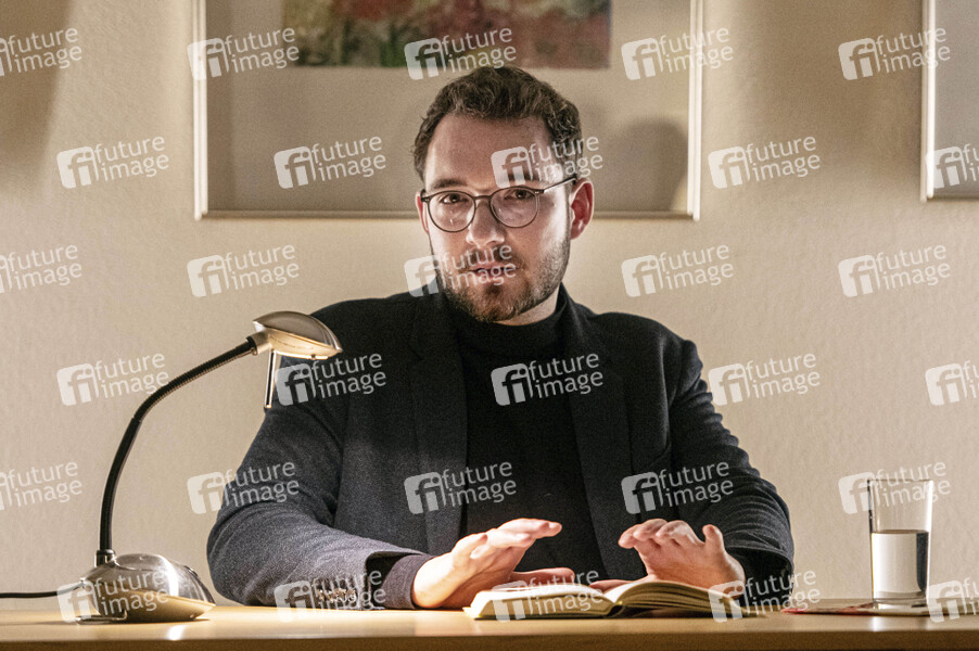 Lukas Rietzschel bei der Lesung aus seinem zweiten Buch 'Raumfahrer' in der Stadtbibliothek. Radeberg,14.10.2021