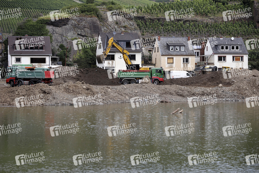 Nach dem Jahrhunderthochwasser in der Eifel durch heftige Regenfälle und Dauerregen mit Überschwemmungen und Überflutungen haben die Aufräumarbeiten im Ahrtal große Fortschritte gemacht. Einheiten von Polizei, THW, Bundeswehr und Feuerwehr mitsamt vielen freiwilligen Helfern haben Straßen geräumt, Schutt und Schlamm entfernt und die Menschen versorgt. Der Wiederaufbau wird trotzdem Jahre dauern. Im Bild Flutschäden in der Ortschaft Mayschoß, in der die Flut viele Häuser zerstörte, 08.08.2021