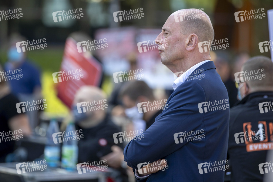 Wolfgang Tiefensee - #alarmstuferot - Die Veranstaltungsbranche in Thüringen lud zum Dialog vor den Landtag. Zahlreiche Techniker, Musiker, Veranstalter und sogar ein paar Politiker fanden sich ein um zu diskutieren. Erfurt, 02.09.2020