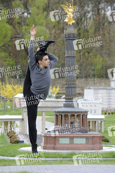 Fototermin zu 'Made in Berlin', der neuen Show im Wintergarten. Die jungen Artisten Eike von Stuckenbrok, David Pereira, Mareike Koch und das Duo Dennis und Lea zeigen einige ihrer Kunststücke im Modellpark Berlin in der Wuhlheide