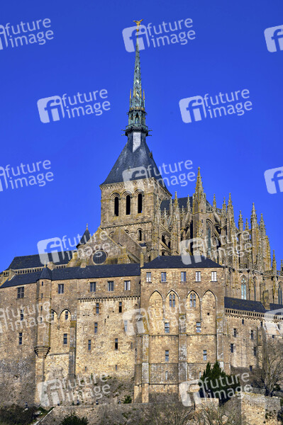 Die Gemeinde Le Mont Saint-Michel mit der Abtei Mont-Saint-Michel liegt in der Bucht des Mont-Saint-Michel im Wattenmeer der Normandie und Anteilen am Festland, Seit 1979 gehören der Berg und seine Bucht zum Weltkulturerbe der UNESCO. Le Mont-Saint-Michel, 03.03.2023