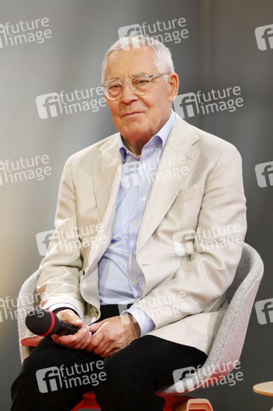 Karl Schlögel, Träger des Friedenspreises des deutschen Buchhandels, im Gespräch auf der Literaturbühne von ARD, ZDF und 3sat auf der 77. Frankfurter Buchmesse auf dem Messegelände. Frankfurt am Main, 17.10.2025