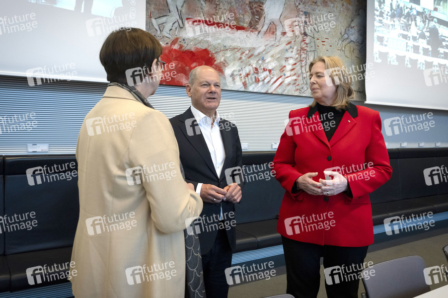 Saskia Esken, Olaf Scholz und Bärbel Bas bei der Fraktionssitzung der SPD-Bundestagsfraktion im Reichstagsgebäude. Berlin, 05.05.2025