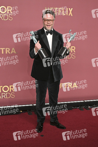 Seth Rogen mit dem Preis für den besten Comedy-Serien-Darsteller und das beste Schauspielensemble in 'The Studio'beim Photocall der Preisträger der 32. Verleihung der Actor Awards 2026 im Shrine Auditorium. Los Angeles, 01.03.2026