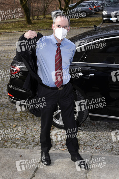 Hubert Aiwanger bei der Ankunft zur Pressekonferenz zu den aktuellen Beratungen zur Corona-Pandemie im Prinz-Carl-Palais. München, 23.02.2021
