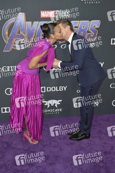 Zoe Saldana und Jeremy Renner bei der Weltpremiere des Kinofilms 'Avengers: Endgame' im Los Angeles Convention Center. Los Angeles, 22.04.2019