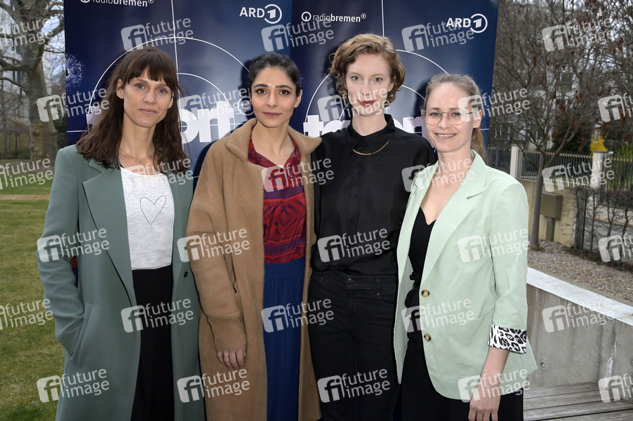 Sophie Lutz, Pegah Ferydoni, Luise Wolfram und Inez Björg David bei der Preview des ARD-Krimis 'Tatort - Angst im Dunkeln' in der Vertretung des Landes Bremen beim Bund. Berlin, 11.03.2024