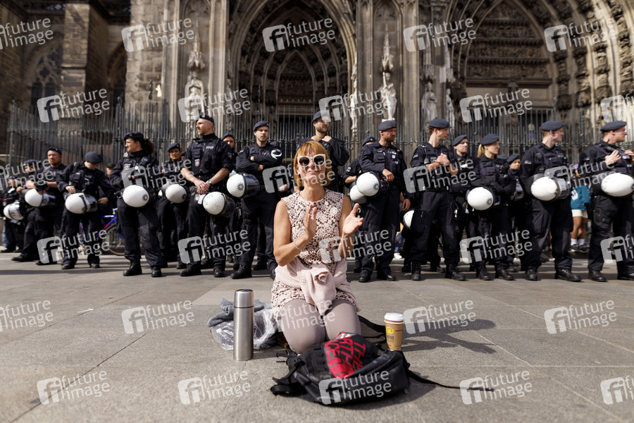 Gegnerin der Corona-Maßnahmen auf dem Roncalliplatz. Köln, 16.05.2020
