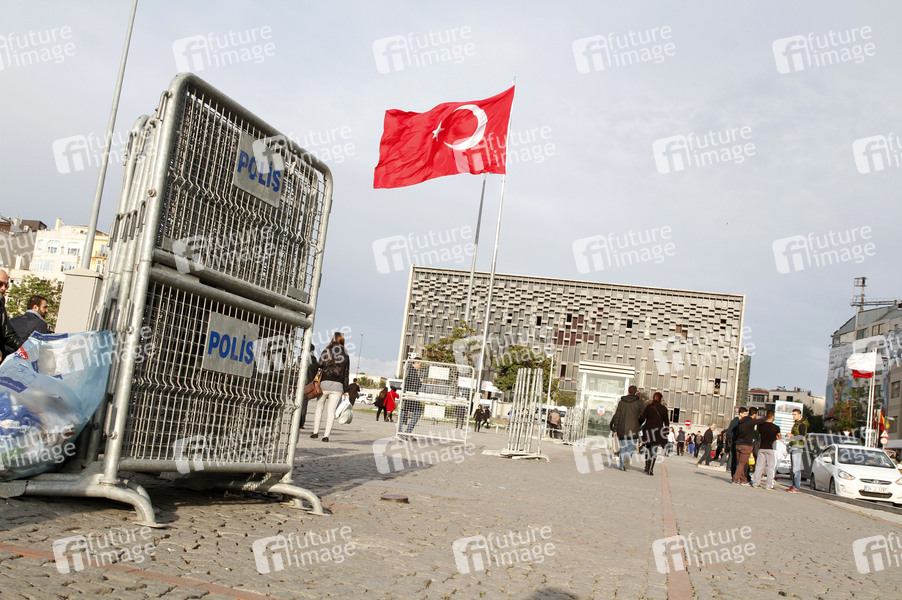 Die Stadt Istanbul hat angeblich wegen Bauarbeiten den Taksimplatz gesperrt, den traditionellen, aber lange Zeit verbotenen Aufmarschplatz der türkischen Gewerkschaften, der linken Parteien und Jugendbewegungen. Istanbul, 30.04.2014