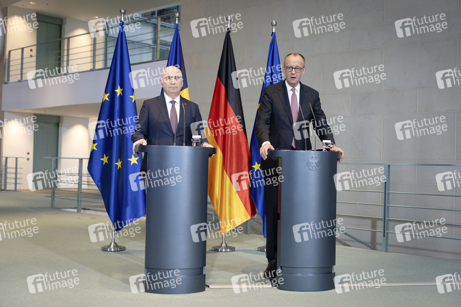 Ilie Bolojan und Friedrich Merz beim Empfang des Ministerpräsidenten von Rumänien zu einem gemeinsamen Gespräch mit anschließendem Pressestatement im Bundeskanzleramt. Berlin, 28.01.2026