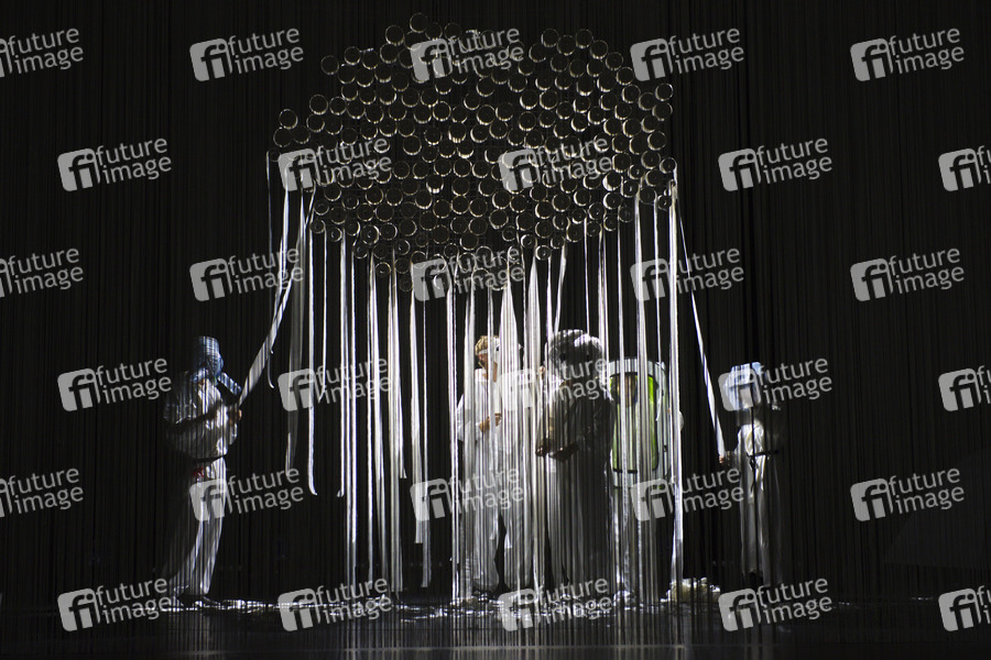 Knut Berger, Niels Bormann, Lea Draeger, Aysima Ergün, Tim Freudensprung und Orit Nahmias bei der Fotoprobe zum Theaterstück 'Death Positive - States of Emergency' im Maxim Gorki Theater. Berlin, 30.09.2020