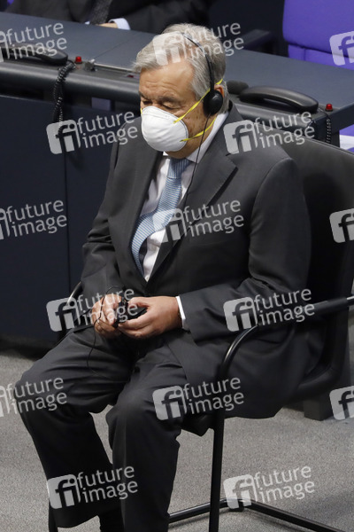 Antonio Guterres bei der Rede anlässlich 75 Jahre Vereinte Nationen im Plenum im Reichstagsgebäude. Berlin, 18.12.2020