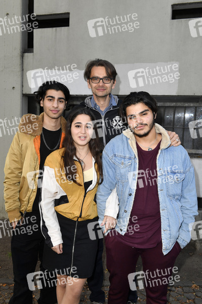Doguhan Kabadayi, Derya Dilber, Damir Lukacevic und Mohammad Eliraqui am Set des Kinofilms 'Nasser Hund' im Künstlerhof Alt Lietzow. Berlin, 29.10.2019