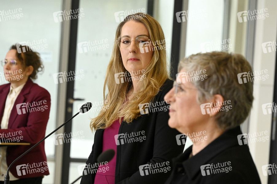 Katharina Dröge und Britta Haßelmann beim Pressestatement der Bündnis 90/Die Grünen-Bundestagsfraktion im Reichstagsgebäude. Berlin, 13.03.2025