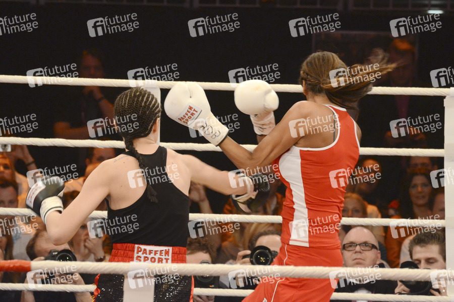 Tessa Bergmeier vs. Nadja 'Naddel' Abd El Farrag bei der Fernsehshow 'Das große Sat.1 Promiboxen 2013' im Castello. Düsseldorf, 08.03.2013