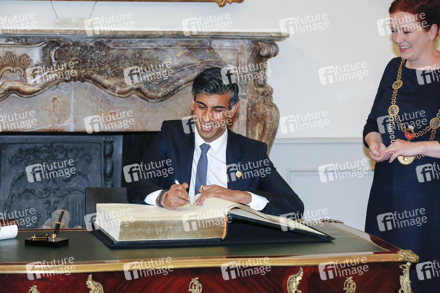 Rishi Sunak und Katja Dörner beim Bildtermin vom Eintrag einiger G7-Finanzminister und Notenbankgouverneure ins Goldene Buch der Stadt Bonn im Alten Rathaus. Bonn, 19.05.2022