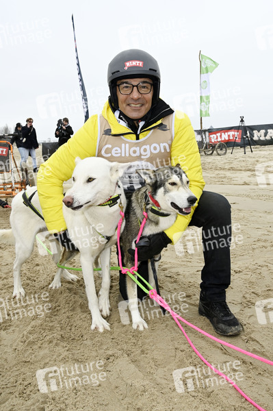 Erol Sander beim 9. Baltic Lights 2025 Charity-Schlittenhunderennen zu Gunsten der Welthungerhilfe zwischen der Seebrücke Ahlbeck und der Seebrücke Heringsdorf. Heringsdorf, 01.03.2025