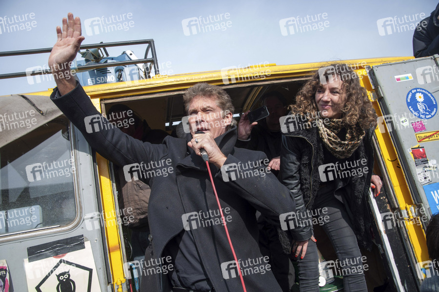 David Hasselhoff protestiert an der East Side Gallery gegen Abbau der Berliner Mauer. Berlin, 17.03.2013