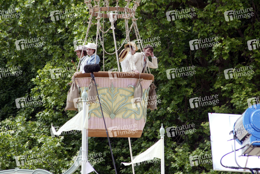 Statisten im Heißluftballon bei Dreharbeiten