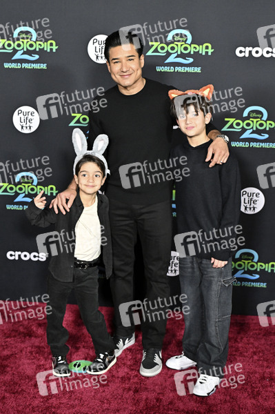 Mario Lopez mit Söhnen Santino Rafael Lopez und Dominic Lopez bei der Weltpremiere des Animationsfilms 'Zoomania 2 / Zootopia 2' im El Capitan Theatre. Los Angeles, 13.11.2025