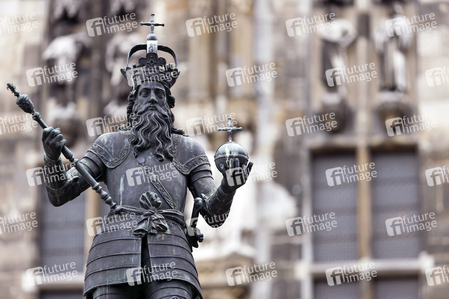 Karl der Große, Karol, Karolinger, Mittelalter, Frühmittelalter, Geschichte, Deutsche Geschichte, Historie, Kaiser, König, Statue, Aachen, Brunnen, Karlsbrunnen, Carolus Magnus, Karolus Magnus, Charlemagne, Fränkisches Reich, Kaiserwürde, Franken, Frankenreich, Herrscher, Feldzüge, Macht, Reich, Europäische Geschichte, Herrschaft, Regent, römisch-deutscher Kaiser, französischer König, Karl I., Karl der Erste, Symbolbild, Symbolfoto