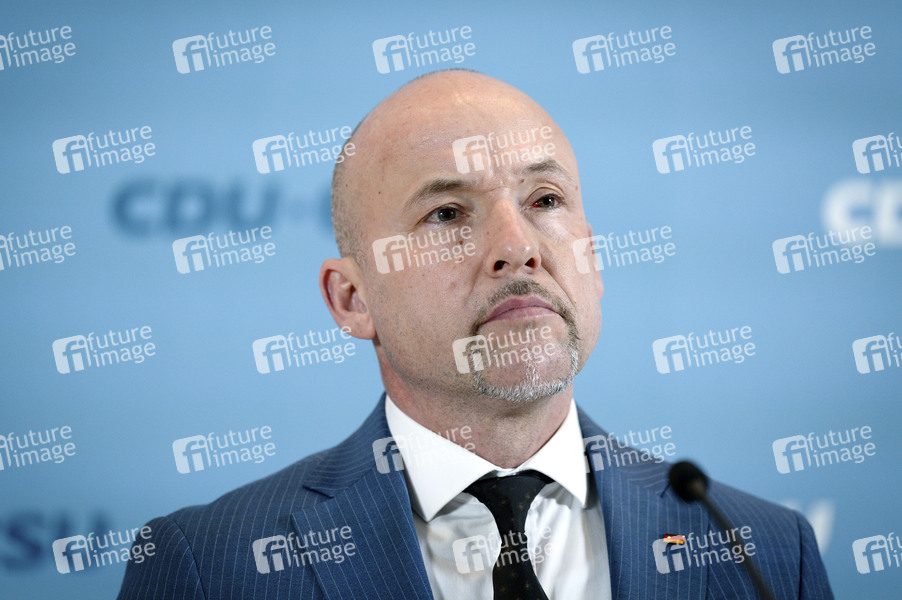 Alexander Hoffmann beim Pressestatement zur Fraktionssitzung der CDU/CSU-Bundestagsfraktion im Reichstagsgebäude. Berlin, 27.01.2026