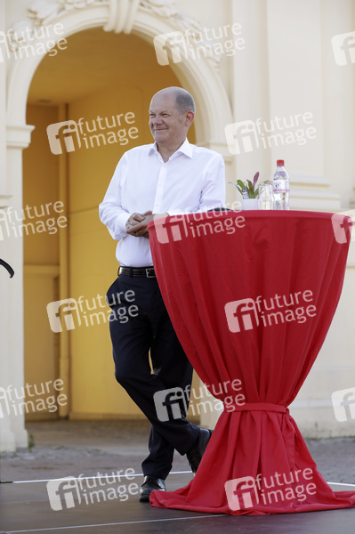 Olaf Scholz bei einem öffentlichen Bürgergespräch vor dem Brandenburger Tor. Potsdam, 30.07.2021