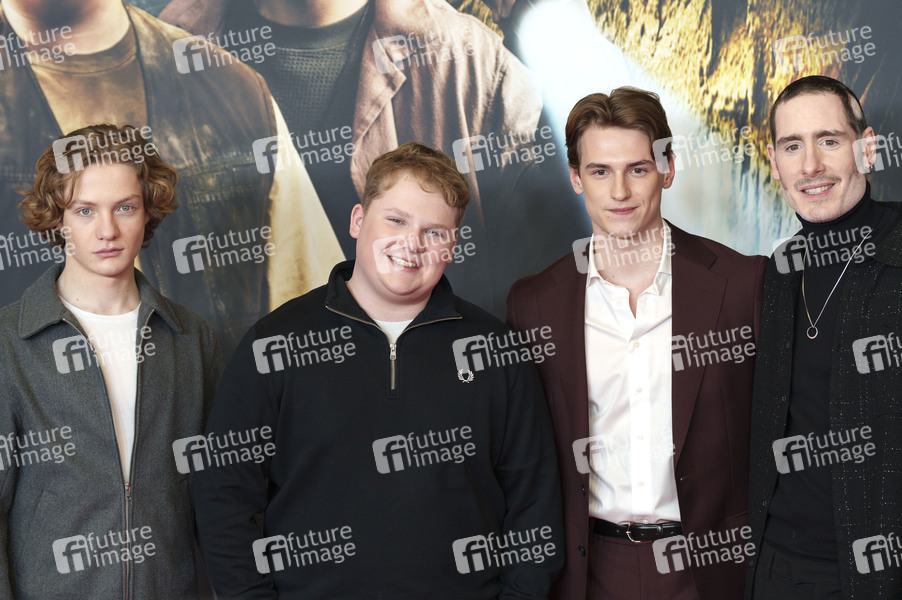 Levi Brandl, Julius Weckauf, Nevio Wendt und Tim Dünschede bei der Premiere des Kinofilms 'Die drei ??? - Toteninsel' im Mathäser Filmpalast. München, 11.01.2026