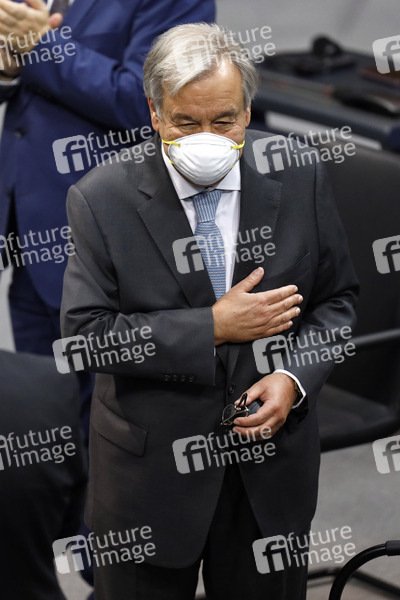 Antonio Guterres bei der Rede anlässlich 75 Jahre Vereinte Nationen im Plenum im Reichstagsgebäude. Berlin, 18.12.2020