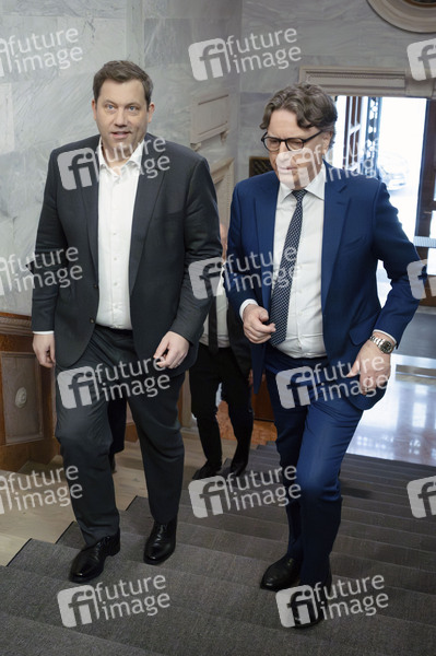 Lars Klingbeil und Stefan Wintels bei der Pressekonferenz zur Vorstellung des Deutschlandfonds in der KfW Niederlassung Berlin. Berlin, 18.12.2025