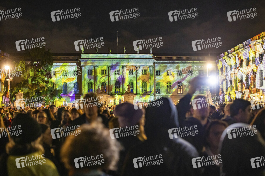 Die Humboldt-Universität zu Berlin. Das Festival of Lights Berlin gehört zu den bekanntesten Lichtfestivals weltweit. Es ist ein kostenloser Event in Berlin, der jährlich im Herbst stattfindet und 10 Tage lang bekannte Berliner Sehenswürdigkeiten durch Illuminationen, lichtkünstlerische Projektionen und 3D-Mappings aufwändig in Szene setzt. Berlin, 06.10.2024