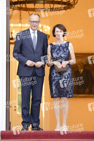 Friedrich Merz mit Ehefrau Charlotte Merz beim festlichen Abendessen zur Würdigung des 60-jährigen Jubiläums der Aufnahme diplomatischer Beziehungen zwischen der Bundesrepublik Deutschland und Israel am 12. Mai 1965 im Schloss Bellevue. Berlin, 12.05.2025