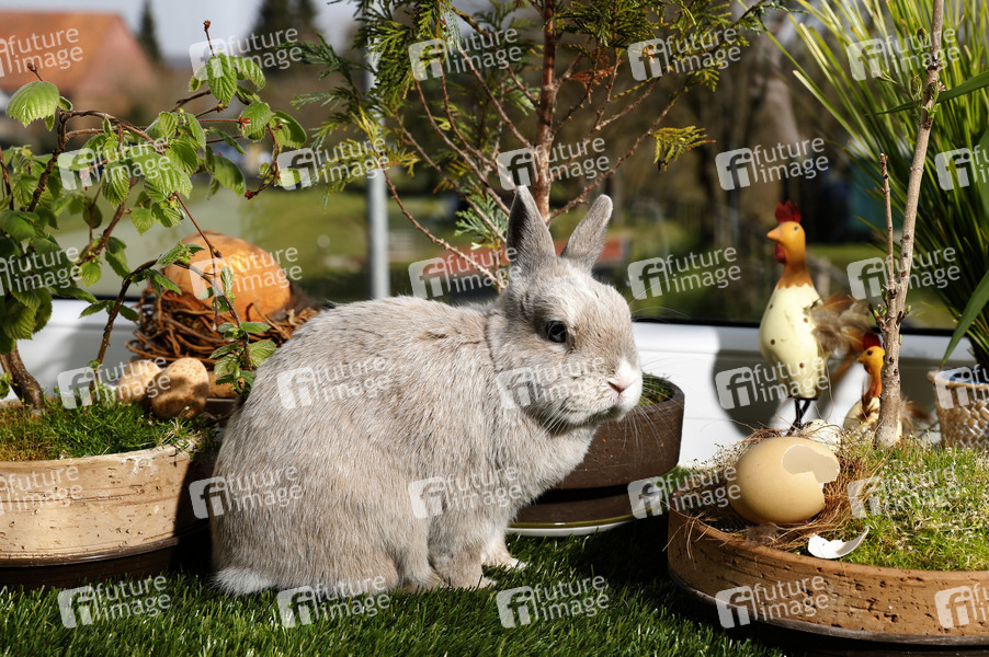 Hase, Osterhase, Kaninchen, Zwergkaninchen, Easter Bunny, Frohe Ostern, Oster-Geschenke, Ostern, Osternest, Ostersaison, Osterzeit, Ostereier, Feiertag, Ostersonntag, Ostermontag, Symbolfoto, Symbolbild