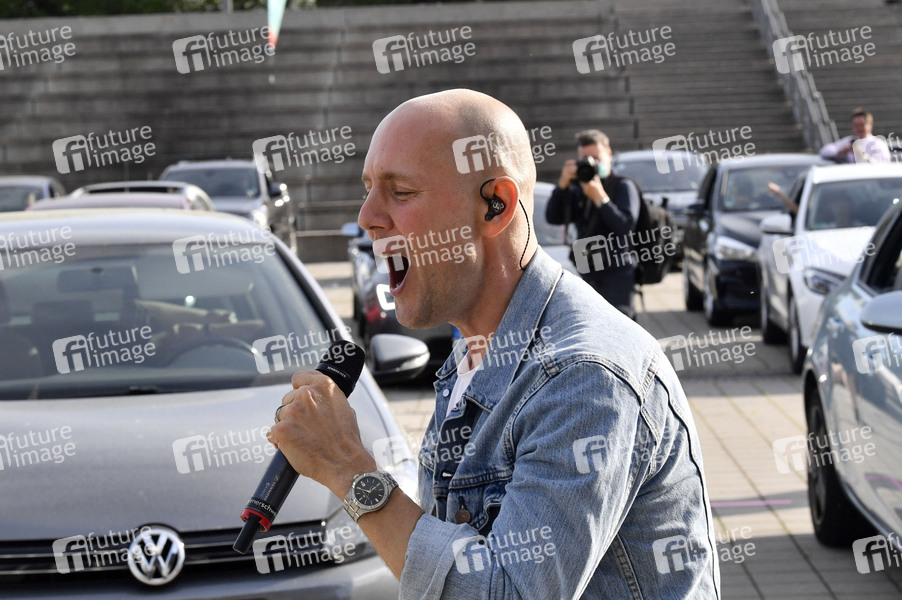 Sänger, Oli P., Schauspieler, Moderator, Oliver Petszokat, Musik, Konzert, Auftritt, Bühne, Stage, live, Unterhaltung, Entertainment, Kultur, Corona, Sars-CoV-2, Covid-19, Coronavirus, Coronakrise, Corona-Krise, Corona-Pandemie, Coronamaßnahmen, Corona-Schutz, Kontaktverbot, Mindestabstand, Social Distancing, Abstand, Abstandhalten, Abstandsregel, Auto, Autokonzertreihe, Autokonzert, Auto-Konzert
