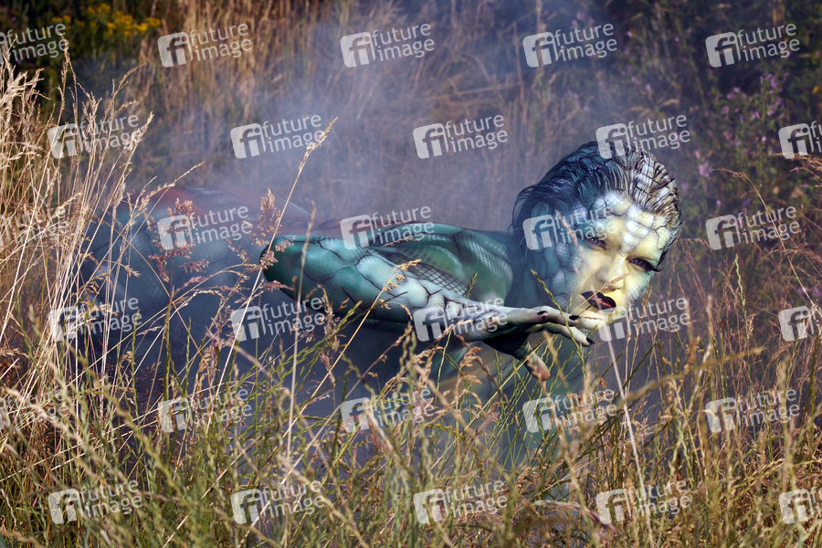 Bodypainting, Erotik, Frau, nackt, draußen, weiblich, Gras, Wiese, Rauch, erotic, woman, nude, outdoor, female, meadow, smoke