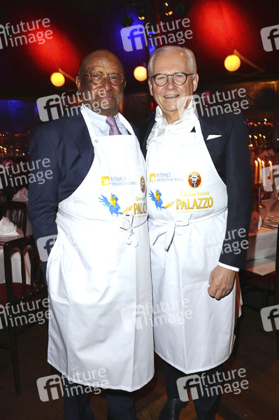 Ian Karan und Rüdiger Grube beim Charity-Abend zugunsten des Altonaer Kinderkrankenhauses (AKK) in Cornelia Polettos Palazzo. Hamburg, 28.02.2023