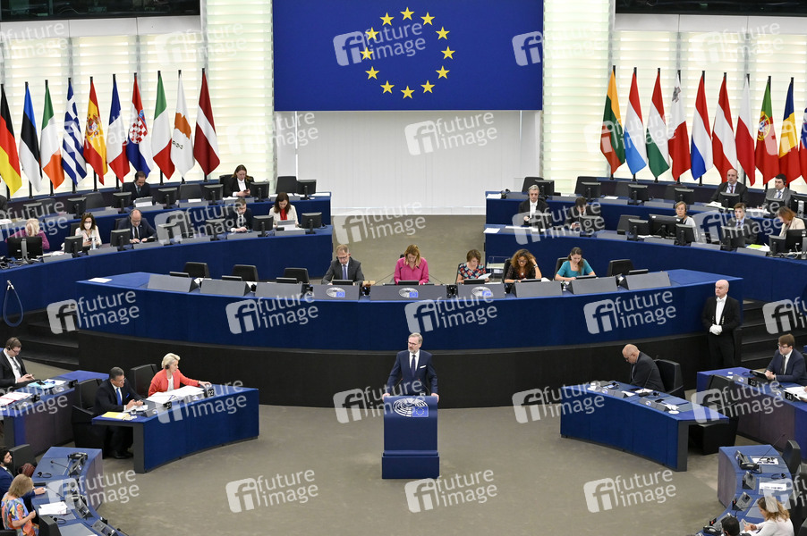 Petr Fiala präsentiert die Prioritäten der tschechischen EU-Ratspräsidentschaft im Plenarsaal des Europäischen Parlaments. Das Motto der tschechischen Ratspräsidentschaft lautet 'Europa als Aufgabe'. Das Motto unterstreicht die Notwendigkeit, die derzeitige EU-Politik im Lichte des russischen Angriffskrieges gegen die Ukraine neu zu bewerten. Straßburg, 06.07.2022