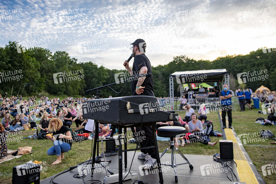 Jakob Amr von den Leoniden live beim Picknick Konzert auf der Zoopark Festwiese. Erfurt, 10.07.2021