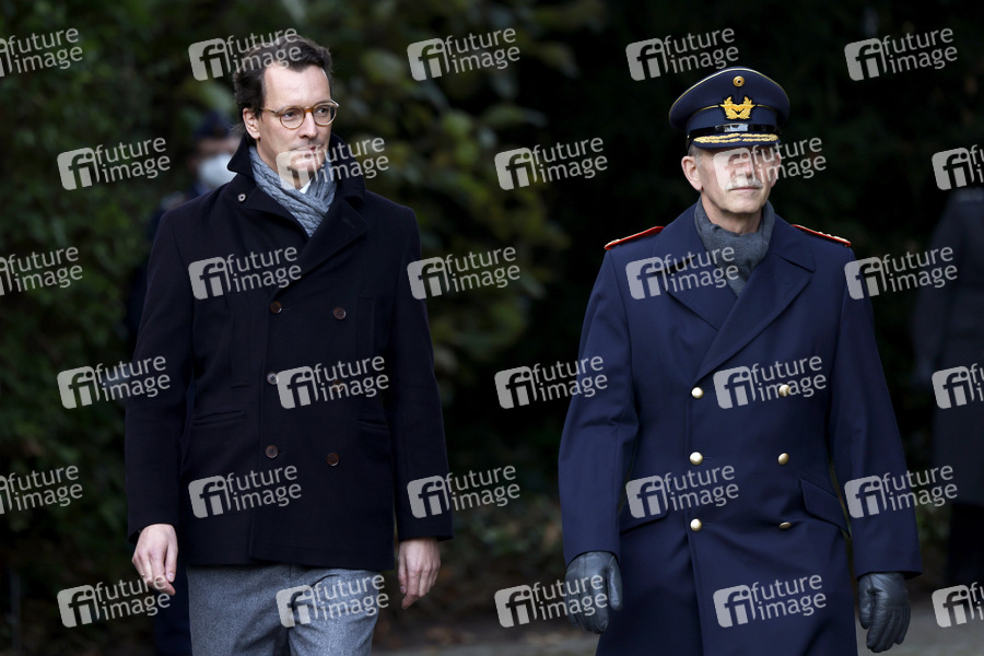 Ministerpräsident Hendrik Wüst und Generalleutnant Martin Schelleis nehmen anlässlich des 66. Gründungs-jahres der Bundeswehr am feierlichen Gelöbnis vor der Villa Hammerschmidt in Bonn teil. 50 Soldatinnen und Soldaten des ABC-Abwehrbataillons 7 aus Höxter und des ABC-Abwehrbataillons 750 aus Bruchsal legen hier ihr Gelöbnis ab. Bonn, 12.11.2021