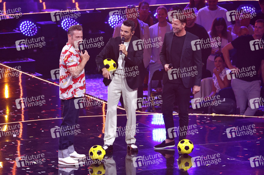 Dick Brave, Giovanni Zarrella und Roman Weidenfeller in der ZDF-Musikshow 'Die Giovanni Zarrella Show - Die große Sommerparty' in der Westfalenhalle. Dortmund, 23.08.2025