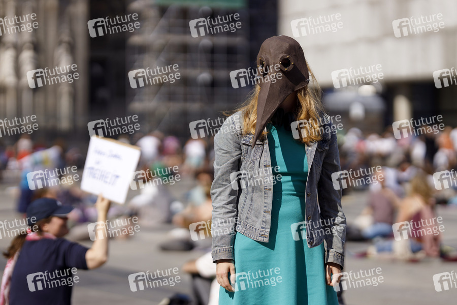 Unangemeldete Demo gegen Corona-Maßnahmen auf dem Roncalliplatz. Köln, 09.05.2020