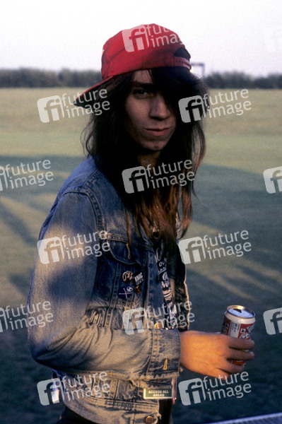 Scotti Hill von Skid Row bei einem Photoshooting im Milton Keynes Bowl. Milton Keynes, 18.08.1989