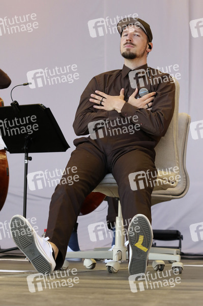Alligatoah live bei einem Konzert der 'Akkordarbeit & das Gregor Schwellenbach Streichquartett'-Tour beim Vor Deiner Tür Open Air im Cruise Center Steinwerder. Hamburg, 29.07.2021.
