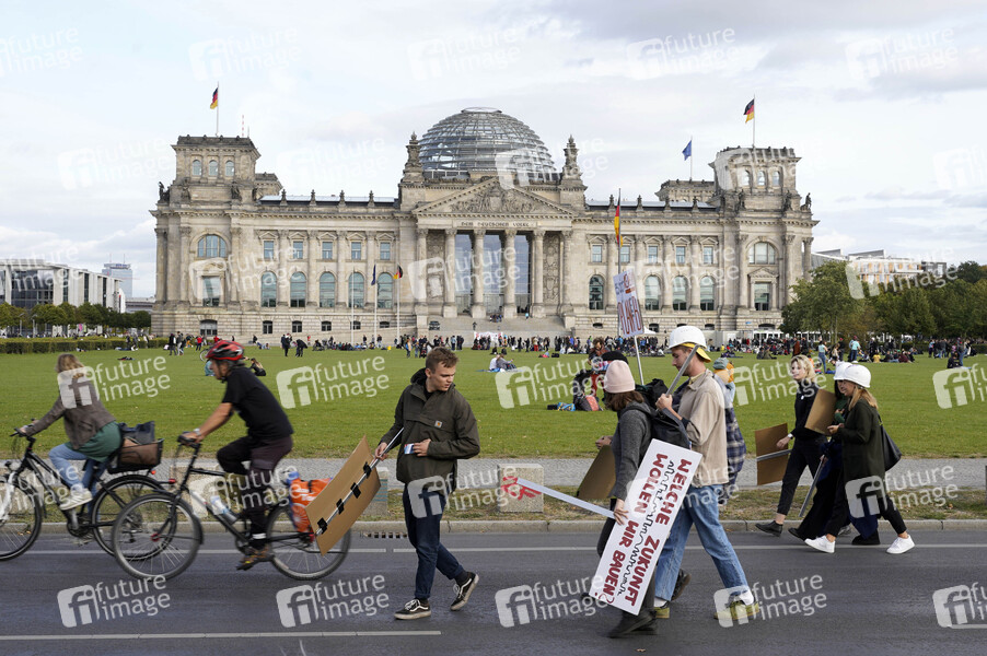 Demonstranten bei der 'Fridays for Future' Demonstration im Rahmen des weltweiten Klimastreiks am Reichstagsgebäude. Berlin, 20.09.2019